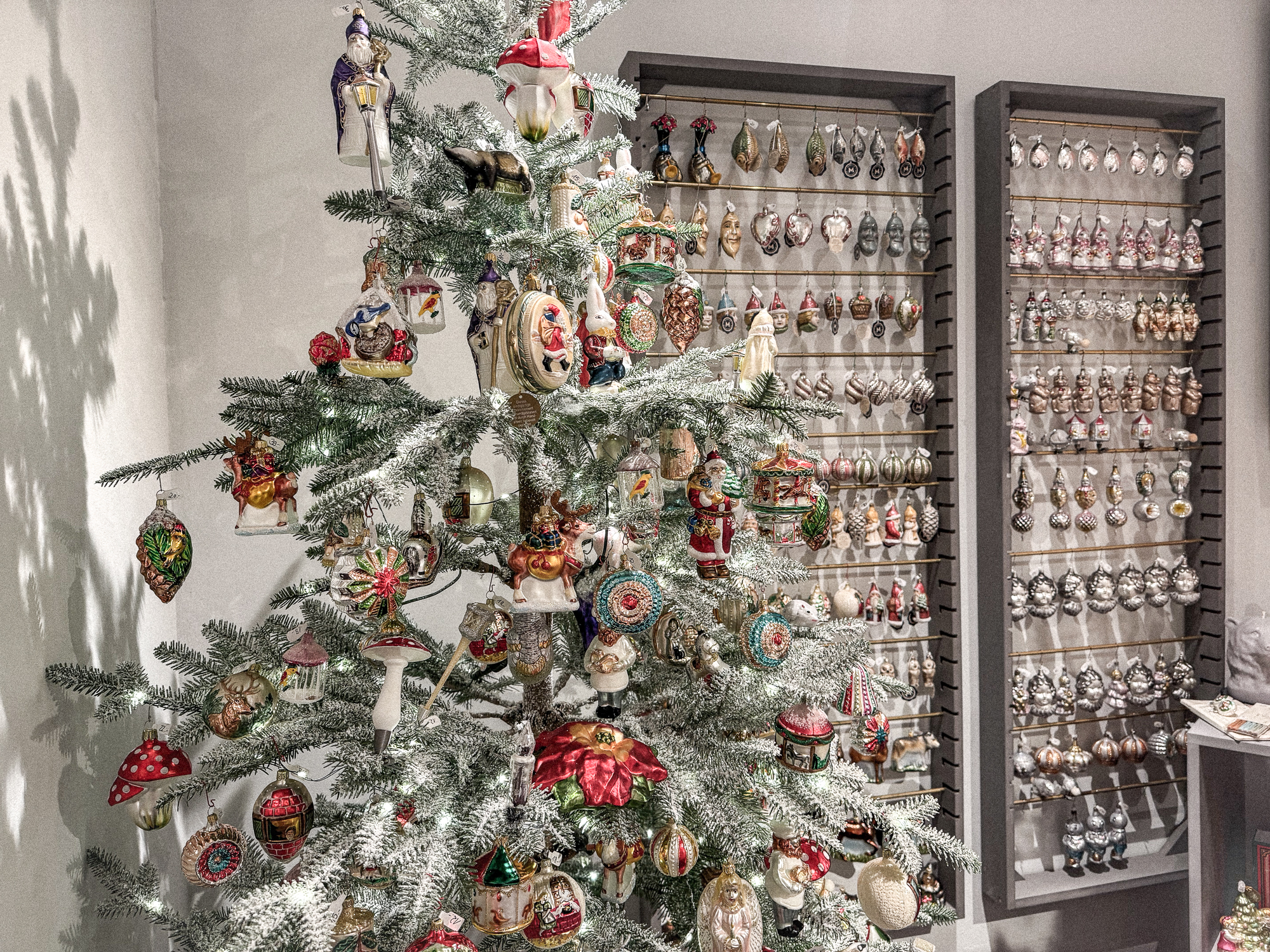 Jedes Ornament ist ein Kunstwerk: zarte Vögel, die sich in den Zweigen niederlassen, Tiere des Waldes, die wie aus einem Wintermärchen entsprungen scheinen, Figuren voller Nostalgie und Glanz. Klassische Kugeln, Spitzen und funkelnde Glasketten vollenden das Bild und verwandeln den Christbaum in ein leuchtendes Symbol von Wärme und Geborgenheit.
